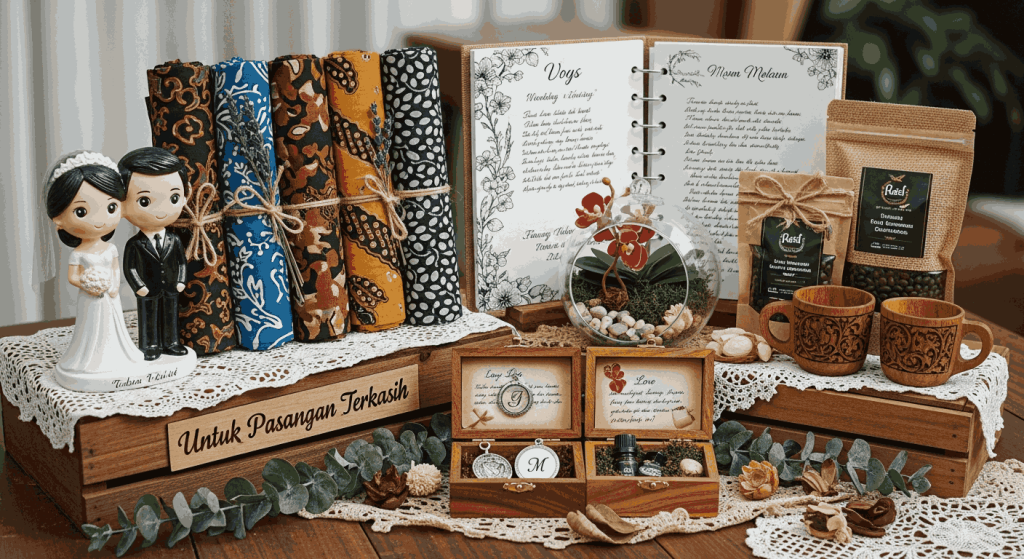 Salah satu inspirasi seserahan nikah unik adalah menggunakan kerajinan tangan. Anda dapat membuat kerajinan tangan yang memiliki makna dan nilai yang lebih, seperti kerajinan tangan yang terbuat dari kayu atau kerajinan tangan yang terbuat dari kain.