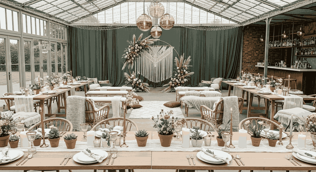 5. Dekorasi Boho Chic - Konsep dekorasi boho chic adalah konsep yang paling populer di kalangan pasangan yang ingin memiliki pernikahan yang unik dan berkesan. Dekorasi boho chic memiliki tema bohemian dan dapat membuat pernikahan menjadi lebih sederhana dan unik.