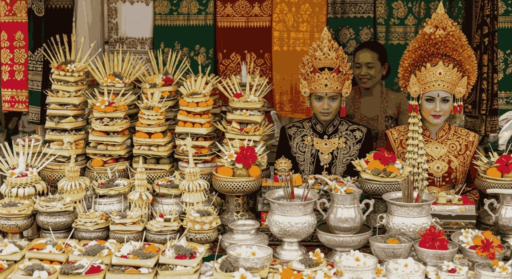 5. Tema Pernikahan Adat Bali dengan Warna Biru dan Kuning